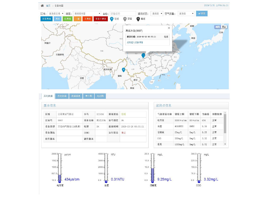 3. 實時數據:平臺能夠顯示監測點的實時數據;