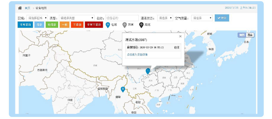 設(shè)備地圖:各個(gè)監(jiān)測(cè)數(shù)據(jù)和儀器信息通過(guò)地圖實(shí)時(shí);