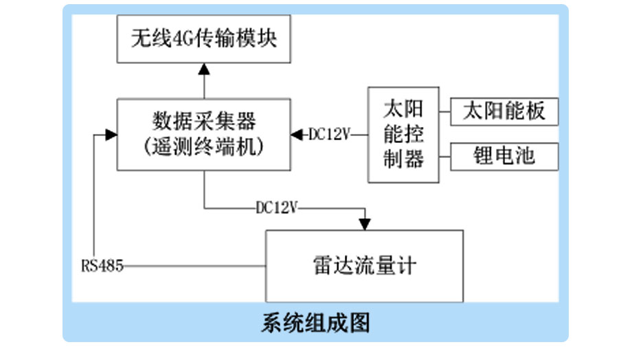 雷達(dá)流量監(jiān)測(cè)系統(tǒng)是以流量監(jiān)測(cè)儀器為核心,運(yùn)用現(xiàn)代傳感技術(shù)、自動(dòng)測(cè)量、自動(dòng)控制技術(shù)、計(jì)算機(jī)應(yīng)用技術(shù)和通訊網(wǎng)絡(luò)等組成的綜合性在線(xiàn)自動(dòng)監(jiān)測(cè)系統(tǒng)。本系統(tǒng)主要由:雷達(dá)流量傳感器、數(shù)據(jù)處理主機(jī)、數(shù)據(jù)傳輸系統(tǒng)、應(yīng)用層等部分組成。傳感部分是信息化的基礎(chǔ),主要實(shí)現(xiàn)城區(qū)水雨情采集和排水過(guò)程監(jiān)測(cè)監(jiān)控;測(cè)量主機(jī)主要實(shí)現(xiàn)站點(diǎn)編輯、斷面輸入、各類(lèi)數(shù)據(jù)匯集、存儲(chǔ)、管理和計(jì)算;遠(yuǎn)程傳輸系統(tǒng)主要是通過(guò)RTU所進(jìn)行的數(shù)據(jù)傳輸功能,對(duì)所關(guān)心的數(shù)據(jù)進(jìn)行上傳至數(shù)據(jù)中心;應(yīng)用層在信息資源中心的基礎(chǔ)上提供綜合信息服務(wù)、工程運(yùn)行維護(hù)管理和信息展示等功能,為明渠流量信息化提供科學(xué)依據(jù)。