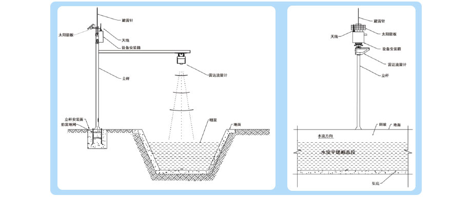 安裝時(shí)需將雷達(dá)流量計(jì)垂直固定在支架上,保證流量計(jì)安裝高度在測(cè)量量程(0.2~7m)內(nèi);且需盡量保證發(fā)射的雷達(dá)波全部照射到水面,以保證測(cè)量精度。