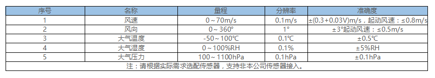 1.可配接大氣溫濕度、大氣壓力、風速、風向、等氣象要素;