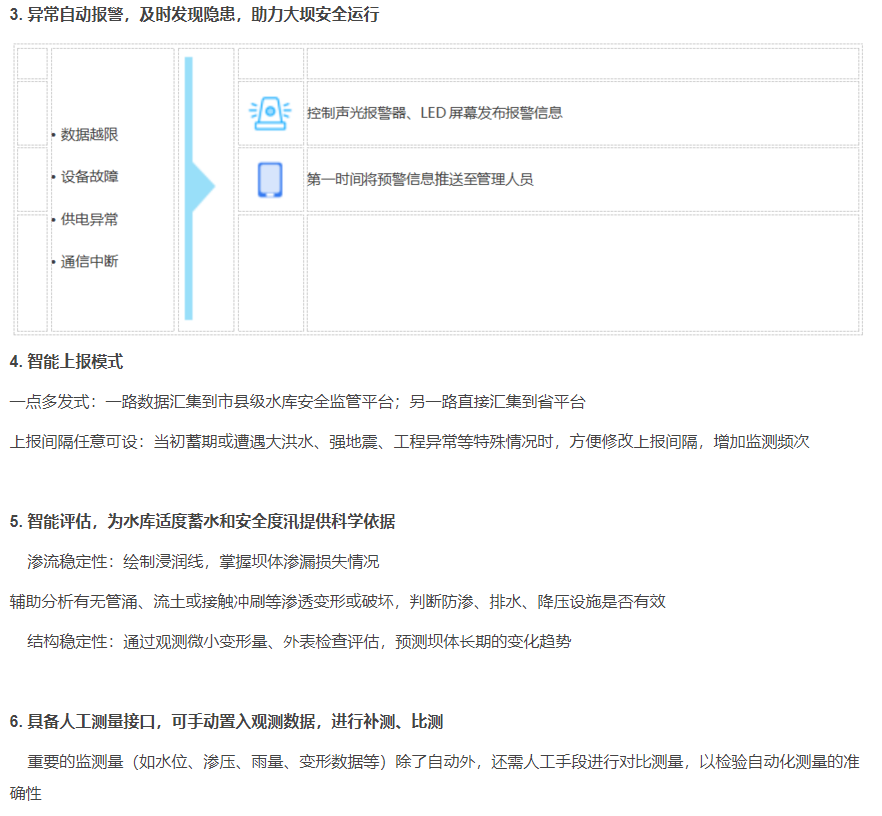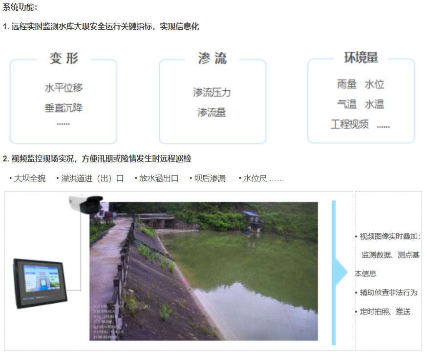 水庫大壩是攔洪蓄水和調節水流的水利工程建筑物,《國務院辦公廳關于切實加強水庫除險加固和運行管護工作的通知》(國辦發 [2021] 8號),以吸2021年度總河湖長會議,均要求加快建設水庫大壩安全監測設施,提升信息化管理能力,健全水庫大壩安全運行監測系統。水庫大壩安全監測項目主要包括滲壓滲流和壩體的位移、沉降和變形監測,監測范圍包括壩體、壩基,以吸影響工程安全的泄輸水建筑物和近壩岸坡等。